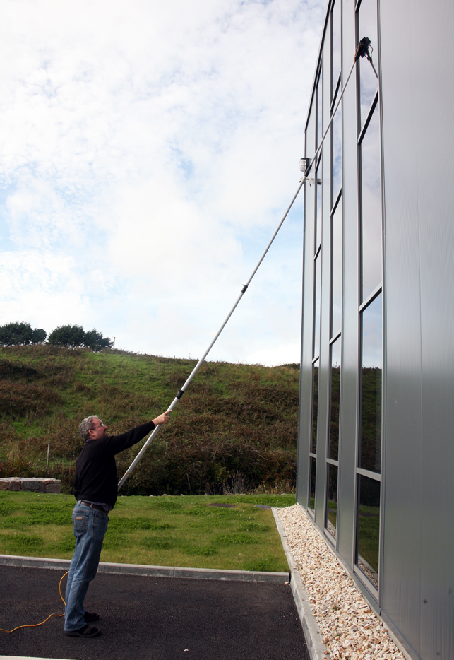 The window cleaning pole allows us to reach and clean windows that were previously inaccessible. There are no Health and Safety risks impeding the use of water-fed window cleaning pole equipment in any way, making them by far the safest and most cost effective method of reaching and washing windows.